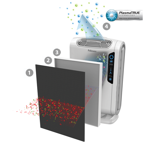 - odstraní 99,97% veškerých částic znečišťujících vzduch do velikosti 0,3 mikronu pomocí 4-stupňového systému filtrace; eliminuje pyly i dalších alergeny, roztoče a jejich trus, zárodky plísní, virů a bakterií, prach, nepříjemné pachy (například z použitých dětských plen), částečky kůže i srsti domácích zvířat, nebo dokonce tabákový kouř