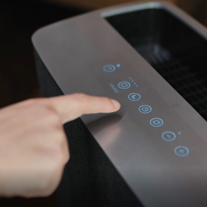 Dotykový ovládací panel čističky je neviditelný a aktivuje se, když po něm lehce přejdete prstem nebo po krátkém stisku tlačítka zapnutí. Pokud vás ruší světlo LED indikátorů, které jsou na ovládacím panelu čističe vzduchu, ztlumte jej jediným tlačítkem. V nočním režimu se světelné indikátory vypnou, čistička vzduchu však pracuje nadále.