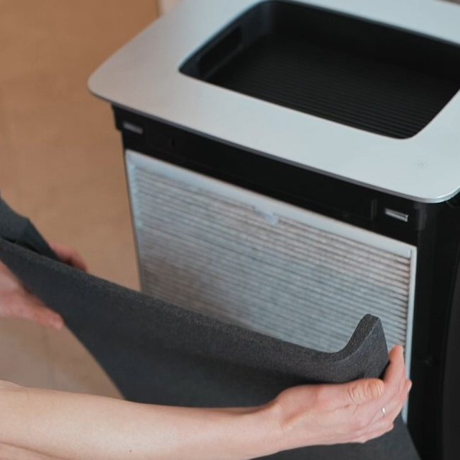 Textilní předfiltr dotváří design čističky a zároveň odstraňuje ze vzduchu větší prachové částice. Tím chrání Dual Filter™ a prodlužuje jeho životnost. Integrovaná technologie Sanitized® zabraňuje množení bakterií a mikrobů uvnitř filtru.
