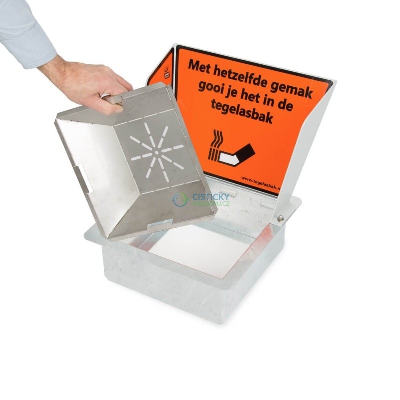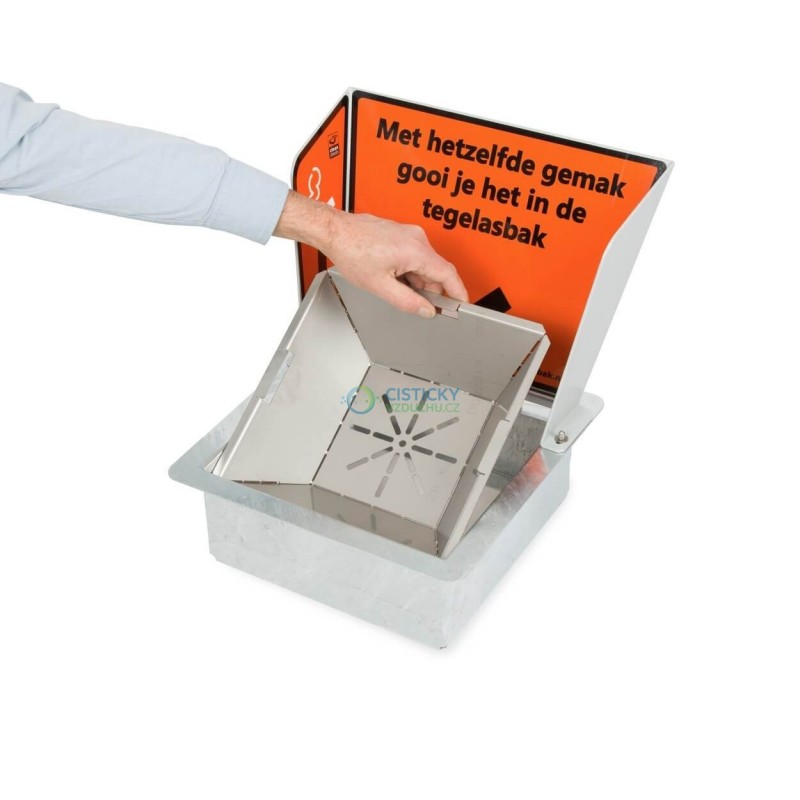 Výrazný vhazovací trychtýř nabádá a usnadňuje vhazování nedopalků a žvýkaček na to pravé místo. Navíc je možné tento vhazovací trychtýř opatřit samolepkami s vlastním designem - logo nebo slogan společnosti, návod na používání popelníku CleanCube, apod.