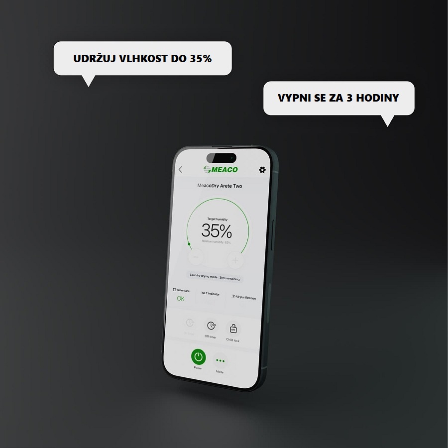 Abyste měli vlhkost v domácnosti pod kontrolou i mimo domov, můžete odvlhčovač vzdáleně ovládat pomocí aplikace v mobilním telefonu, která je zdarma dostupná pro systémy Android a iOS.
