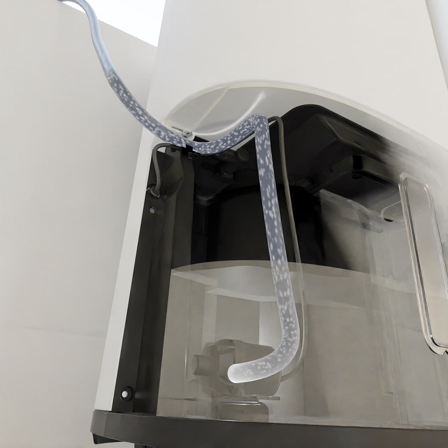 Pomocí dodaného adaptéru lze k odvlhčovači připojit standardní zahradní hadici s průměrem 12,5 mm a odvádět kondenzát z nádržky samospádem přímo do odpadu.