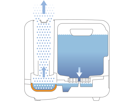 Parní metoda zvlhčování vzduchu zaručuje hygienický provoz, var vody odstraňuje mikroby a bakterie. Pára má příjemnou teplotu na dotek, nehrozí popálení ani opaření. Var se provádí jen s malým množstvím vody.
